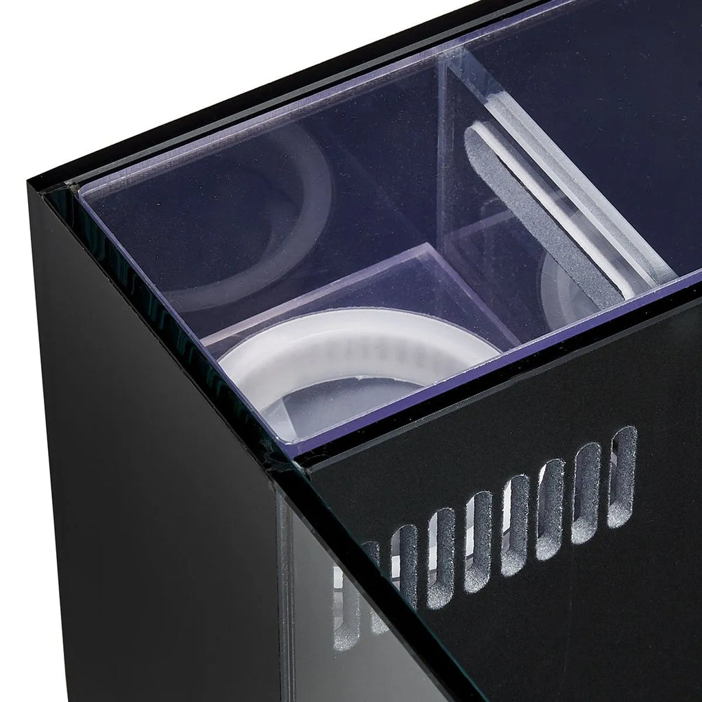 The Maxspect Dice AIO Nano Cube Aquarium is the latest compact all-in-one tank to hit the market, featuring some impressive extras at an affordable price point. Decked out with a filter sock, coral-specialized LED light, overflow weir and filtration cover, dual Y flared return nozzles, and biological plus chemical filtration media; the Dice delivers just about everything you need to get started on the nano reef of your dreams. It has been thoughtfully designed with rimless glass, black silicone seams, and a black filtration compartment to keep your equipment hidden and the focus on your aquatic creation. A compact return pump is also include to circulate water back into the display tank through the Y-shaped dual flare return nozzles for optimal flow.
