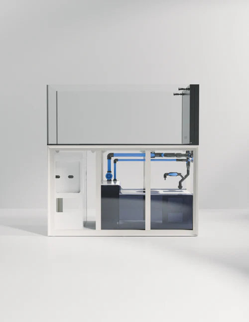- Tanks feature a sleek white bottom, allowing for a bare-bottom setup without exposing equipment in the sump.